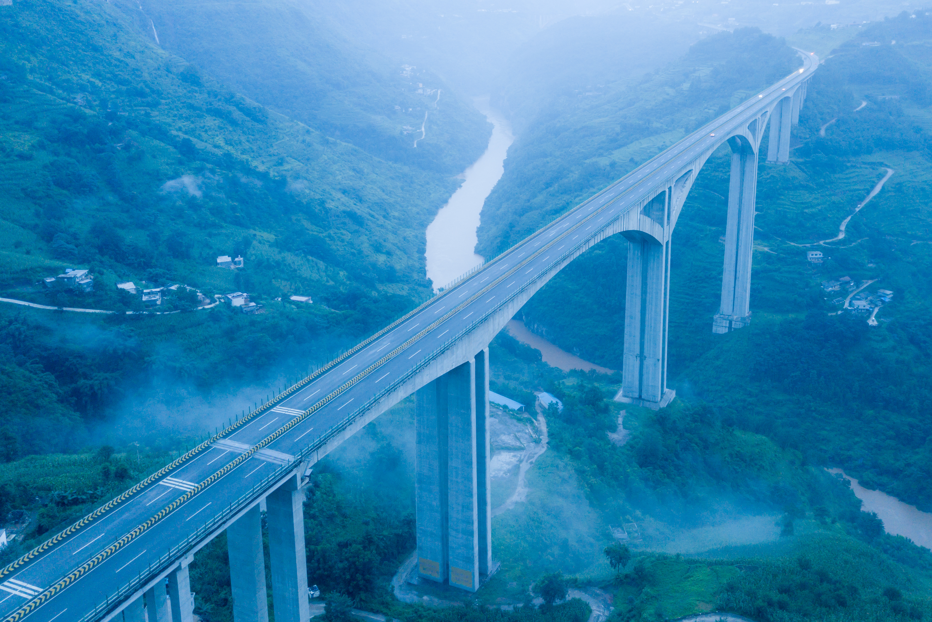 水盤高速公路北盤江特大橋全長(zhǎng)1261m,主跨290m,是目前亞洲最大跨徑的預(yù)應(yīng)力混凝土連續(xù)(空腹式)斜腿剛構(gòu),被譽(yù)為“世界第一腿”。其空腹式結(jié)構(gòu)形式填補(bǔ)了跨徑在200~400m之間缺乏經(jīng)濟(jì)適用橋型的空白;研發(fā)了“下弦采用斜爬掛籃結(jié)合臨時(shí)扣掛系統(tǒng)懸澆,上弦采用支架結(jié)合移動(dòng)模架滯后下弦節(jié)段現(xiàn)澆”部級(jí)施工方法,并研制了大傾角、變曲率、可斜向行走的上置斜爬式掛籃國(guó)家發(fā)明專利。大橋于2013年8月16日建成通車。